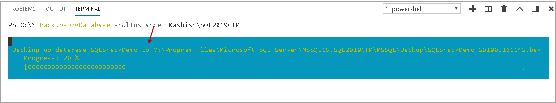 1 | >Backup-DBADatabase -ServerInstance Kashish\SQL2019CTP |