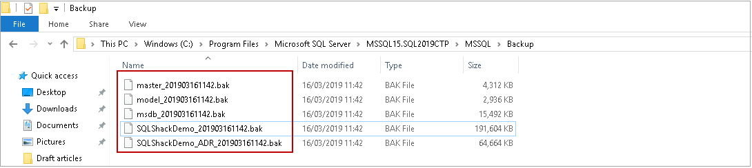 In the default backup directory, database backup file is present. We can see the backup file in the format of databasename_yyyymmddhhss.bak as per default full backup format.