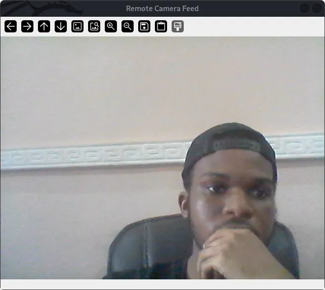 After typing the start command as shown above, we get a screen on the server side showing us everything going on the client side via the client's camera: