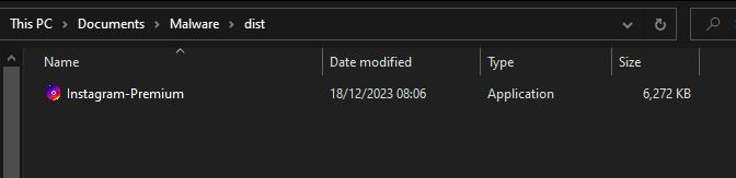 By using a familiar and trusted name such as ‘Instagram-Premium' and associating it with an icon resembling the Instagram logo, this PyInstaller command illustrates how attackers could potentially trick users into executing malicious code. This social engineering technique leverages users' trust in a known brand to encourage them to run the executable. It emphasizes the importance of cautious behavior and verifying the legitimacy of files, especially when they appear to be associated with well-known entities.