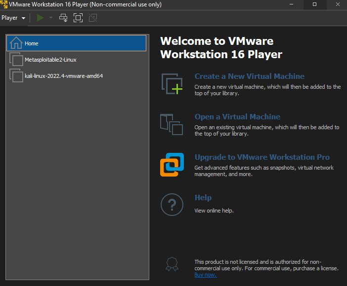 As we mentioned, Metasploitable is a virtual machine. So, we need some kind of virtualization tool to run Metasploitable. We will make use of VMWare. To download VMWare, go here. Please note that for Metasploitable, there is a player (free) and a pro version (paid). If you want full access, obviously go for the paid one. However, the player version is good. You can go on with this tutorial with any version. After downloading, you install it on your computer. It’s a pretty straightforward process. After installing, Launch it and your screen should be like this: