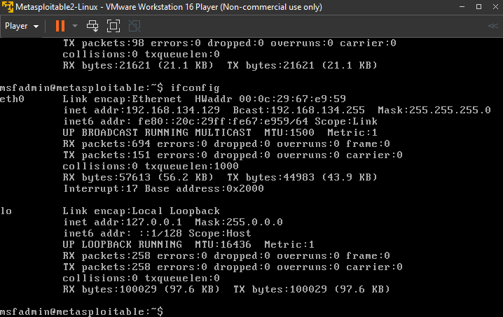 To launch, click on Metasploitable and select Play virtual machine. Give it some time to launch; then you will be asked to enter login details. The default username and password is msfadmin