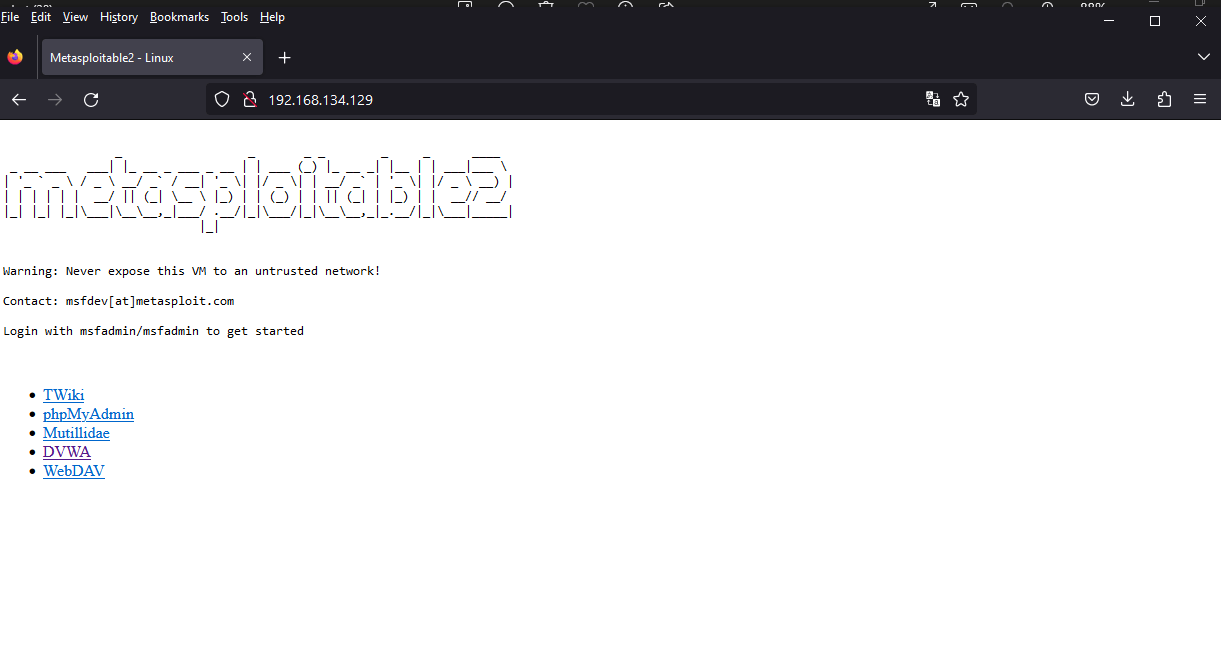 parameter. In my case, it is 192.168.134.129. So copy whatever yours is and paste it into your web browser (of your host computer). You should have a screen like this: