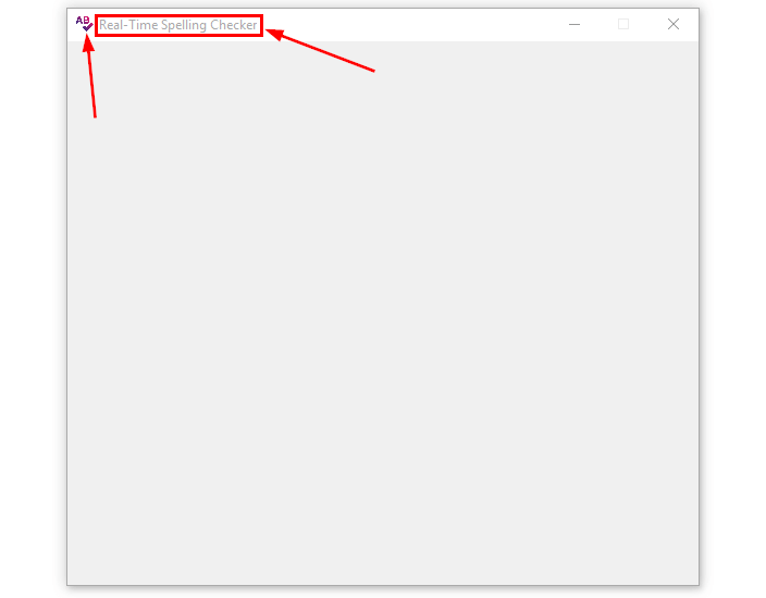# creating the main window self.master = master # giving title to the main window self.master.title('Real-Time Spelling Checker') # defining dimensions and position for the main window self.master.geometry('580x500+440+180') # adding an icon to the main window self.master.iconbitmap(self.master, 'spell-check.ico') # making the main window non-resizable self.master.resizable(height=FALSE, width=FALSE) In the code snippet, we are declaring the master, which will be replaced by the root. Then we have the title() function which takes a string as an argument, this is for the title of the main window. The geometry() function is for the dimensions and position of the main window, 580x500 is for the width and height and 440+180 is for the horizontal and vertical positioning of the main window.