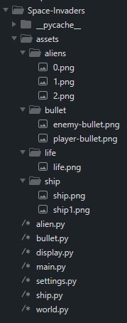 , where we will store our game assets, such as sprites. Here is the file structure of our code: