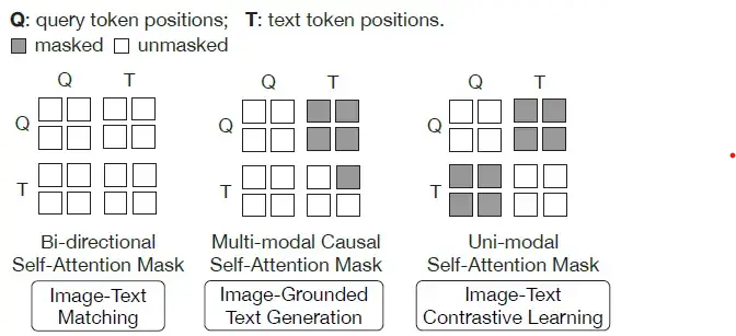 An important thing to note is that the attention mask is applied such that the text token only depends on the preceding tokens and all image tokens, and image tokens can attend to each other. This is different from a unidirectional attention mask, where not every image token can rely on all other image tokens.